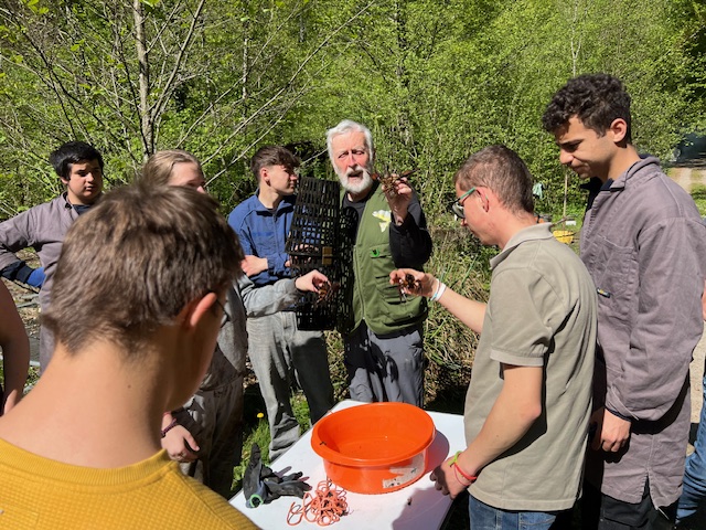 Neben den Arbeiten an den Ufern wurde auch der Damm zwischen Fockeltenteich und Fockeltenbach instandgesetzt sowie das Biotop entschlammt. Besonders eindrucksvoll: In einer Reuse konnten Edelkrebse nachgewiesen werden – ein lebendiger Beleg für die Wirksamkeit der Pflege und die Qualität des Gewässers.